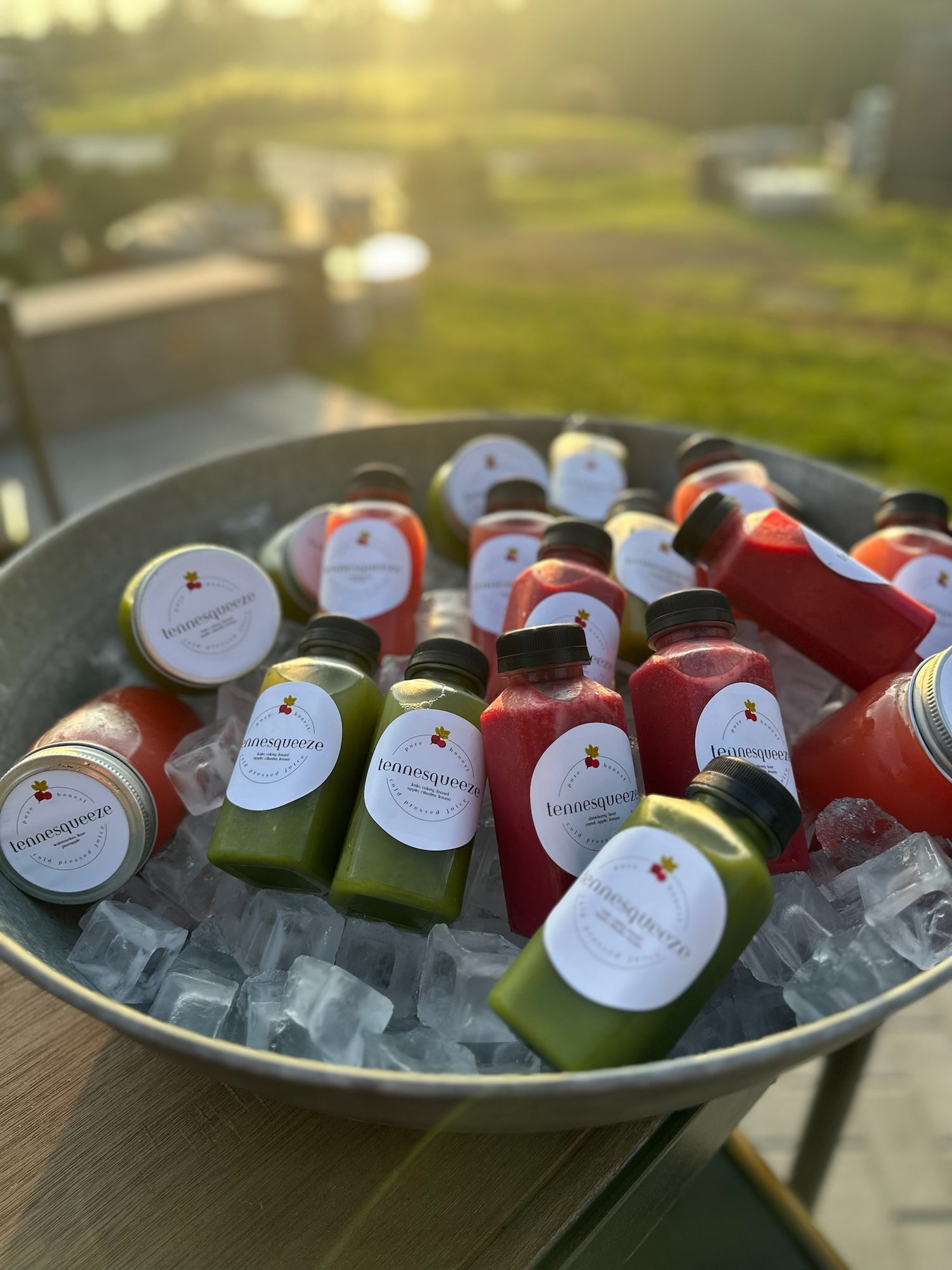 Planning a large event, party, or corporate gathering? Let Tennesqueeze take your event to the next level with our premium, freshly squeezed juices and wellness shots! We specialize in crafting delicious, nutritious beverages that not only taste amazing but also add a touch of sophistication to any occasion.